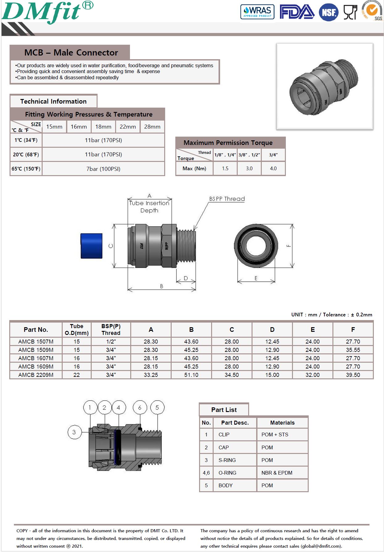 PART NO. | Tube O.D. (mm) | BSP(P) Thread | Action |